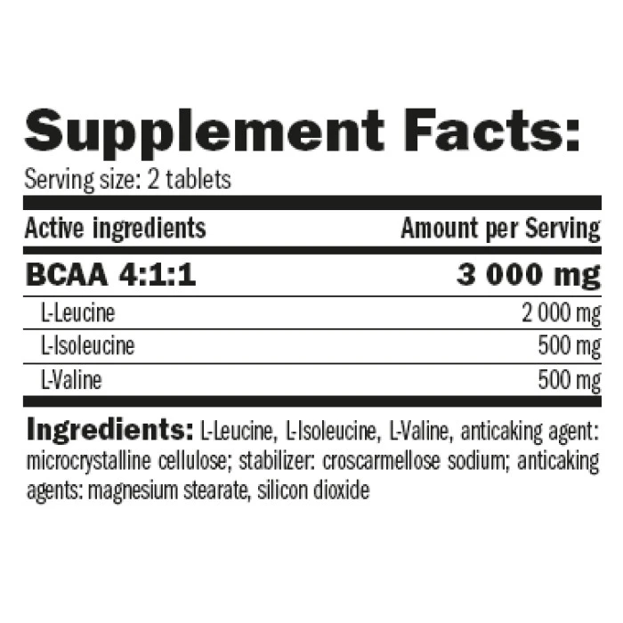 Аминокиселина OLIMP BCAA Mega Caps съдържа със всяка таблетка 1100 мг л-изолевцин, л-валин и л-левци..