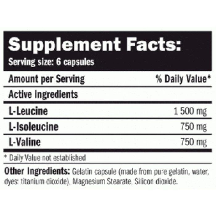Аминокиселина OLIMP BCAA Mega Caps съдържа със всяка таблетка 1100 мг л-изолевцин, л-валин и л-левци..