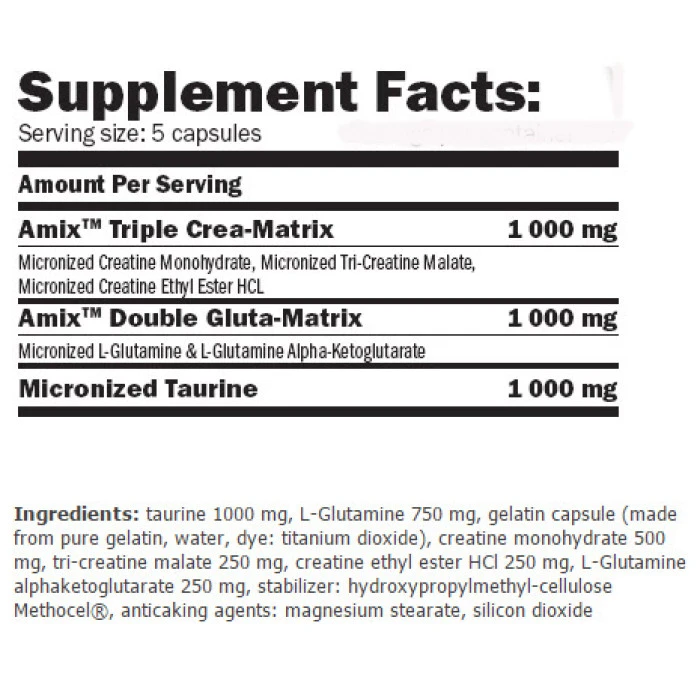 Аминокиселина AMIX CGT-3 mg подпомага растежа на безмастни мускули и ускорява възстановяването. Amix™ CGT-3 е много ефективна спортна добавка, която комбинира три дълго тествани доказани съставки: Креатин, L-глутаминитаурин. Amix CGT-3 съдържа 3 форми на креатин (монохидрат, малат и CEE) и мощна комбинация от L-глутамин и L-глутамин AKG. Тази експлозивна формула предоставя на мускулите ви високо класно захранване за максимално натрупване, бързо мускулно възстановяване след интензивна тренировка и увеличена мощ. Благоприятни свойства: