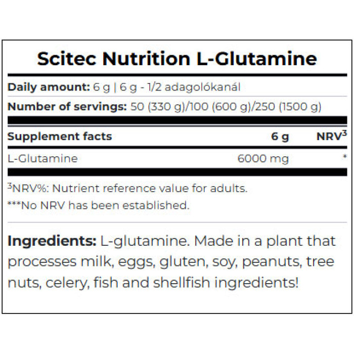 L-Glutamine нa Scitec Nutrition e от типа аминокиселина, която увеличава естественото производство на хормона на растежа в тялото.