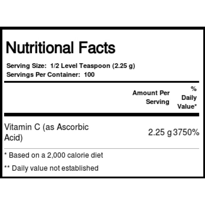 Чиста форма на Витамин Ц: Съдържа само аскорбинова киселина, без добавки или пълнители.