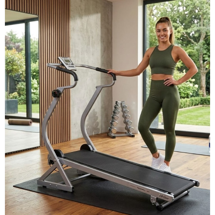 Механична магнитна бягаща пътека с 8 нива на натоварване. Маховик: 3 кг. Дисплей: LCD показващ с..