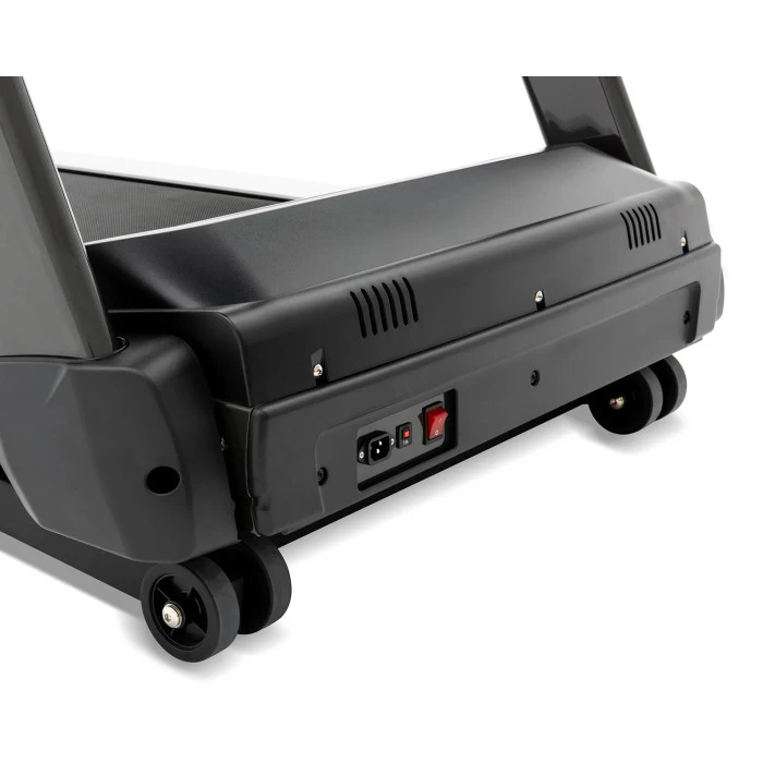 Електронно регулируемият наклон с 15 нива позволява лесна промяна на интензивността и симулиране на изкачвания, като всяка стъпка е с точност от 0.8 градуса. Феноловата повърхност с дебелина 25 мм и двуслойната бягаща лента осигуряват издръжливост, стабилност и дълъг живот на уреда, а ролките Ø76 мм гарантират гладко и безшумно движение.