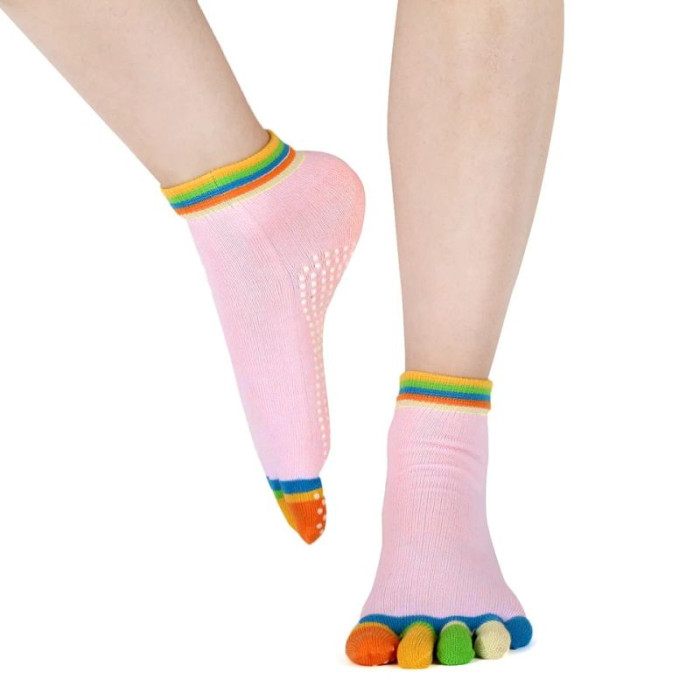 Меки къси чорапи с отворени пръсти, розови. Подходящи за йога, тренировки по пилатес и гимнастика...