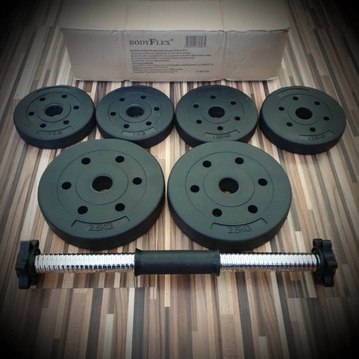 Дъмбелът Bodyflex 10 кг с PVC покритие е практично и удобно решение за тренировки у дома, осигуряващ надеждност, безопасност и комфорт. Благодарение на разглобяемата конструкция с лост и гайки, можеш лесно да регулираш тежестта според нуждите си, което го прави подходящ както за начинаещи, така и за напреднали.