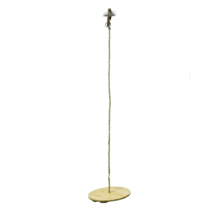 Люлката разполага с кръгла дървена седалка с диаметър 34 см, която осигурява стабилно и удобно сядане. Използваното сезалово въже с дължина 150 см е здраво и устойчиво, като позволява лесно окачване и регулиране според височината на монтаж. Комбинацията от естествени материали придава автентичен вид и приятен допир.