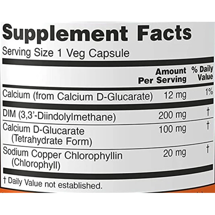 С NOW® DIM 200 можете да насърчите здравословния хормонален метаболизъм, като поддържате нормалните процеси на детоксикация на тялото си. Дииндолилметанът или DIM е фитохимикал, който е естествен метаболит на определени съединения, открити в кръстоцветните зеленчуци като броколи, брюкселско зеле и зеле. Включихме калциев-D-глюкарат, за да подпомогнем процеса, наречен глюкуронизация, важен механизъм за детоксикация, който подпомага елиминирането на определени токсини от околната среда от тялото.