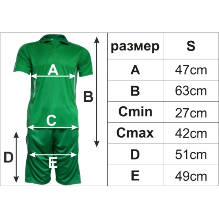 Зелен спортен екип, размер S. Подходящ за футбол, волейбол, хандбал и тенис. Комплект: фланелка ..
