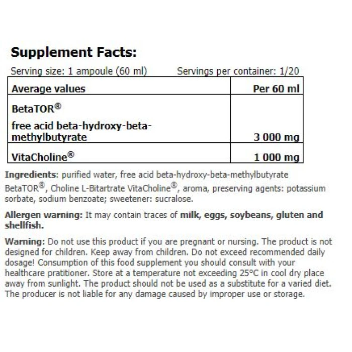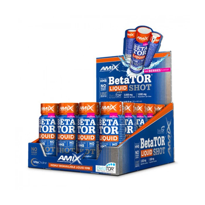 Енергиен бустер AMIX BetaTOR® Liquid SHOT Box е под формата на удобни ампули. Съдържаща бета-хидрокси-бета метибутират, която подпомага качването на мускулна маса и стимулира възстановяването след тренировка. Функции и характеристики: