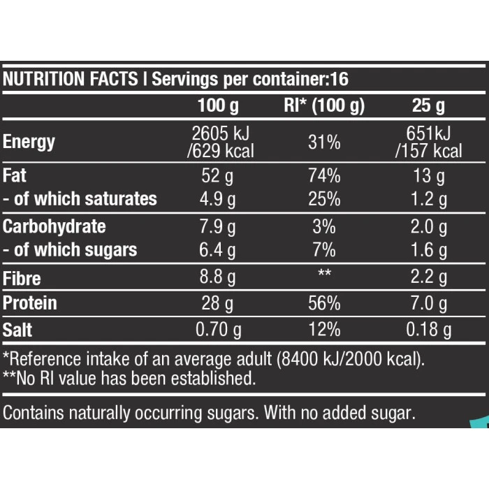 BIOTECH USA Peanut Butter Crunchy е перфектното решение когато ти се хапва нещо вкусно, но не искаш да нарушиш диетата си. Уникално фъстъчено масло с добавени хрупкави парченца, за още по-голямо удоволствие. Можеш да го използваш в шейковете си, намазано на филия и директно от буркана . Всичко зависи от теб! BIOTECH USA Peanut Butter Crunchy е с богато на фибри и е с изцяло 100% натурален състав. Подходящо е за хора, които не консумират животински продукти и е високо съдържание на протеин. Една Доза: Според собствените нужди Начин на приемане: Според собствените нужди Дози в опаковка: Според собствените нужди Вземи още сега с гарантирано качество от Спортен склад БГ! Съставки: Фъстъчено масло (79,4%), Фъстъчени парченца (19,9%) сол Забележки: Пазете далеч от деца. Съхранявайте на сухо и хладно място. Да не се използва като заместител на разнообразното хранене. Поръчай сега от Спортен склад БГ BIOTECH USA Peanut Butter Crunchy с експресна доставка!