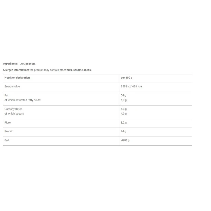 OLIMP 100% Peanut Butter Sauce съдържа 100% натурален състав и е богат на протеин, освен това е с високо съдържание на омега-3 мастни киселини и полезни мазнини. Освен това е със страхотен вкус и може да се използва като допълнение по всяко време на деня, без да се притесняваш от излишните калории. Една Доза: Според собствените нужди Начин на приемане: Според собствените нужди Дози в опаковка: Според собствените нужди Вземи още сега с гарантирано качество от Спортен склад БГ! Съставки: 100% фъстъци Забележки: Пазете далеч от деца. Съхранявайте на сухо и хладно място. Да не се използва като заместител на разнообразното хранене. Поръчай сега от Спортен склад БГ OLIMP 100% Peanut Butter Sauce с експресна доставка!