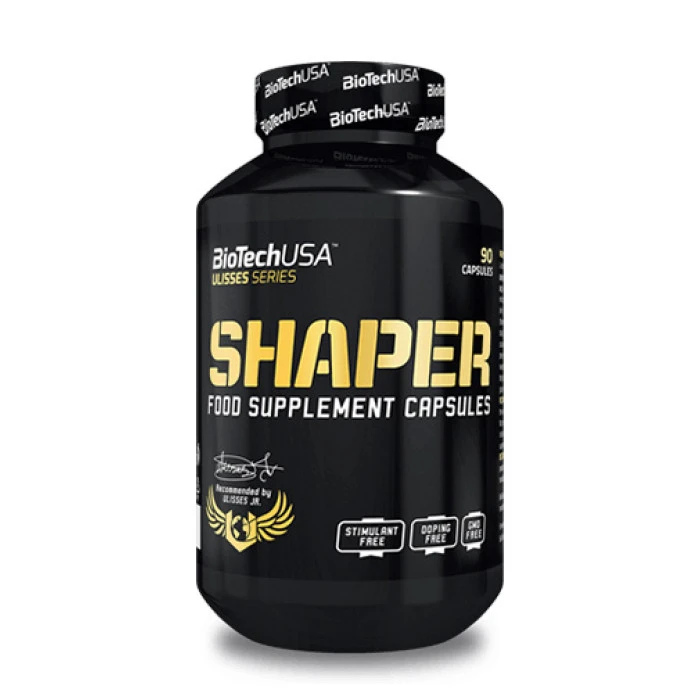 Ulisses Shaper на BIOTECH USA е фат бърнър, ускоряващ метаболизма, с което благоприятства редуцирането на теглото, без да натоварва организма със стимуланти. Разнообразният състав на продукта съдържа и специални компоненти за поддържане на нервната система, например витамини от група В (В3, В5, В6, В12 и фолиева киселина), които ускоряват обмяната на веществата, стимулират защитните сили на организма и участват в кръвотворенето. Продуктът снабдява организма с аминокиселините L-карнитин и L-тирозин, както и четири ключови елемента: цинк, йод, желязо и хром, чието ефективно действие стимулира разграждането на мастните киселини и въглехидратите, регулира нивата на кръвна захар, подкрепя мозъчната дейност и подобрява работата на щитовидната жлеза.