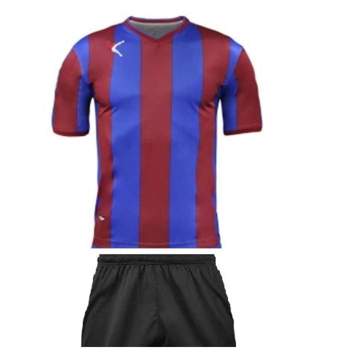 Футболен екип – синьо-червена фланелка (Барселона) с черни гащета, произведен в Италия. Подходящ за професионална употреба.