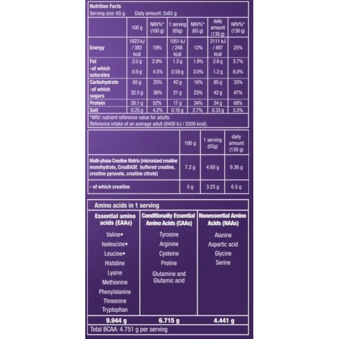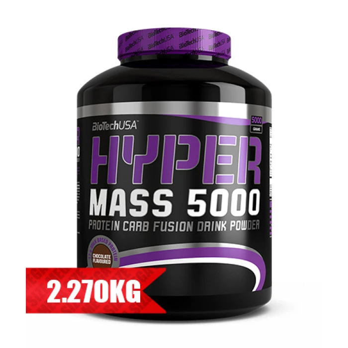 Hyper Mass 5000 от BioTech USA е идеалното решение за начинаещи спортисти, които биха искали да прибавят към дневната си диета допълнителни калории и протеини, за да увеличат чистата си мускулна маса. Внимателно направен с 6.5гр. креатинов монохидрат с фармацевтична степен, Hyper Mass 5000 от BioTech USA увеличава силата на мускулите и обема на клетката до максималните и размери. Проучвания показват, че недостигът на аминокиселини, особено на BCAA (аминокиселини с разклонена верига), заедно с повишената физическа активност могат да доведат до самоизяждане на мускулната тъкан. Това може да бъде избегнато с добре балансирана диета, която съдържа подходящо количество висококачествени протеини и въглехидрати. Аминокиселините изграждат протеините, по-важното, е че са основата за образуване на мускулна тъкан. С Hyper Mass 5000 от BioTech USA ще осигурите оптимална доставка на протеини и въглехидрати, необходими за увеличаване на мускулната маса. Когато говорим за силови мускулни тренировки, силата на мускулите е много важна. За да увеличим силата на мускулите, снабдихме Hyper Mass 5000 от BioTech USA с 6.5гр. креатинов монохидрат в две дози. Креатинът е жизненоважен за свиването на мускулите и допълнителният му прием подпомага мускулната сила, издръжливост и бързо възстановяване. Hyper Mass 5000 от BioTech USA Ви позволява да тренирате мускулите си максимално. Hyper Mass 5000 от BioTech USA е основен продукт за натрупване на чиста мускулна маса. Това означава, че продуктът силно се препоръчва на начинаещи, които се борят с високия прием на калории. Много по-лесно е да пиеш вкусен шейк с мек вкус, за да си набавиш нужните калории, отколкото да ядеш необходимите количества храна. Hyper Mass 5000 от BioTech USA е лесен за приготвяне и можете да пиете шейка няколко пъти на ден. Вкусове: