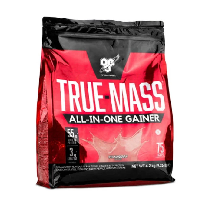 Гейнър BSN True-Mass All In One подпомага покачването на чиста мускулна маса.