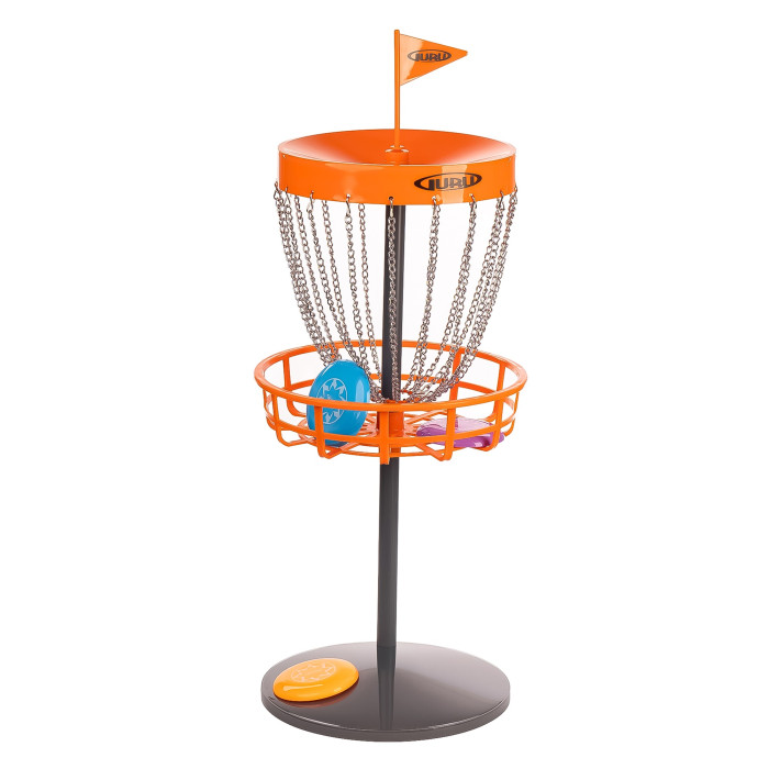 Комплектът включва 5 мини диска с диаметър 10 см в различни цветове, които са удобни за хвърляне и подходящи за всички възрасти. Металните вериги имитират отлично реакцията на професионален discgolf кош – дисковете спират точно и надеждно, което прави играта още по-приятна и динамична.