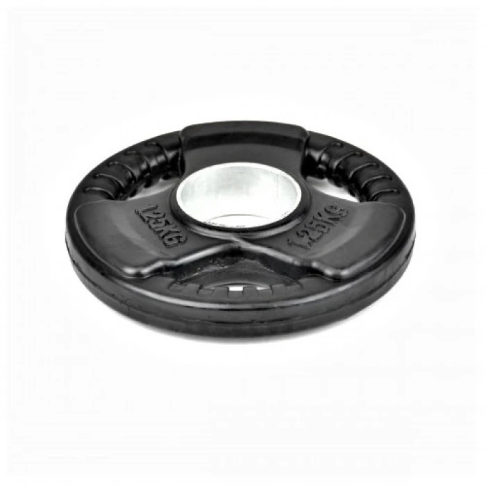 Гумираният диск Bodyflex Ф50, 1,25 кг, със захват е здрав и удобен фитнес аксесоар, подходящ за силови тренировки както в домашни условия, така и във фитнес зали. Със стандартен отвор Ф50 мм, той е съвместим с всички олимпийски лостове, а специалните отвори за захващане позволяват лесно поставяне и сваляне, както и използване на диска самостоятелно за различни упражнения.