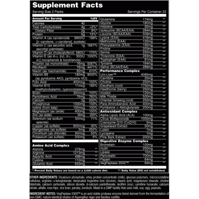 И така, смятате, че редовния прием на мултивитамини ще даде желания резултат? Бъдете реалисти. Искате голяма мускулна маса и огромна сила - единствено Animal Pak от Universal Animal е в състояние да ви помогне за тяхното постигане. Всеки Animal Pak от Universal Animal съдържа мега дози от необходимите витамини и минерали. Да, витамини и минерали. Витамините (органични), и минералите (неорганични) са агенти и катализатори. Те могат да допринесат за съществени ергогенни/анаболни ползи и по-добро функциониране, като запалваща искра за всички необходими химични реакции, които седят в основата на тренирането и изграждането на мускулна маса.
