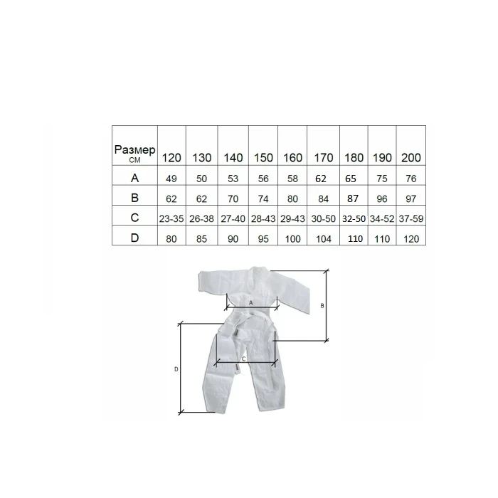 Професионално кимоно 170 см в бяло. Цвят: бял. Универсална кройка за удобно и лесно придвижване...