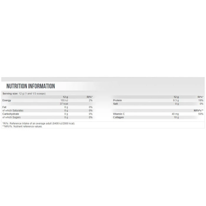 SCITEC Collagen Powder e мощна хранителна добавка, съдържа висококачествен хидролизиран колаген, който подобрява значително здравето на костите и намалява болката в ставите. SCITEC Collagen Powder е с формула за бързо абсорбиране от тялото, като по този начин се усвоява напълно от тялото. Освен това съдържа Витамин С, който допълнително стимулира ефективността, доставяйки ти перфектни резултати с всяка доза. SCITEC Collagen Powder има изключително позитивен ефект върху кожата, ноктите и косата. Също така подпомага работата на сърдечно-съдовата система и действа превантивно срещу заболявания свързани с нея. Приема на добавки съдържащи колаген е изключително важен, тъй като производството му в човешкото тяло намалява с възрастта. В резултат структурата на високите колагенови тъкани (като кожата, хрущялите) отслабва и губи своята еластичност. Една Доза: една мерителна лъжица (12грама) Начин на приемане: Смесете една доза от продукта с 300мл вода и консумирайте веднъж дневно Дози в опаковка: 25 Вземи още сега с гарантирано качество от Спортен склад БГ! Съставки: Хидролизиран морски колаген (от риба), аромати (кайсия, пъпеш, ябълка, киви, маракуя, диня), регулатори на киселинността (ябълчна киселина, безводна лимонена киселина), L-аскорбинова киселина, подсладител (сукралоза), натриев хлорид, оцветители ( Ponceau 4R ***, Brillant Blue FCF). Забележки: Пазете далеч от деца. Съхранявайте на сухо и хладно място. Да не се използва като заместител на разнообразното хранене. Поръчай сега от Спортен склад БГ SCITEC Collagen Powder с експресна доставка!