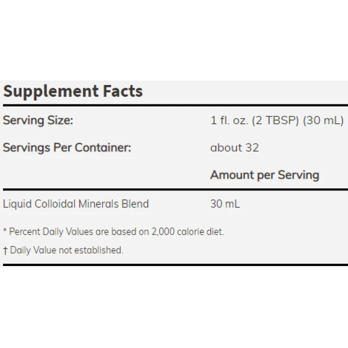 Колоидните минерали са химични елементи, които се срещат в земната кора. Colloidal Minerals подсилва костните структури – костите, зъбите и тъканите, стимулира деленето на клетките, поддържа нормален сърдечен ритъм и мускулните контракции. Оказва положително действие върху нервната и психическата дейност, поддържа киселинно-алкалния баланс, регулира храносмилането и усвояването на хранителни вещества. Подпомага клетъчния обмен, пренасянето на активни вещества, например кислород и се грижи за енергийния баланс.