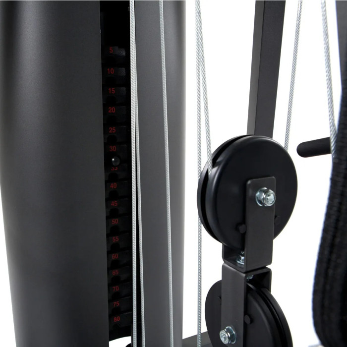 Вградените 80 кг тежести осигуряват достатъчно съпротивление за ефективни тренировки, а при нужда системата може да се разшири до 100 кг.