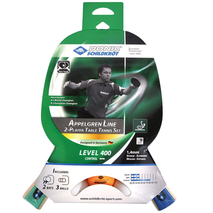Комплекта позволява защитна (CONTROL) игра. Хилки DONIC Appelgren 300: 2 броя. Ергономична ръкох..