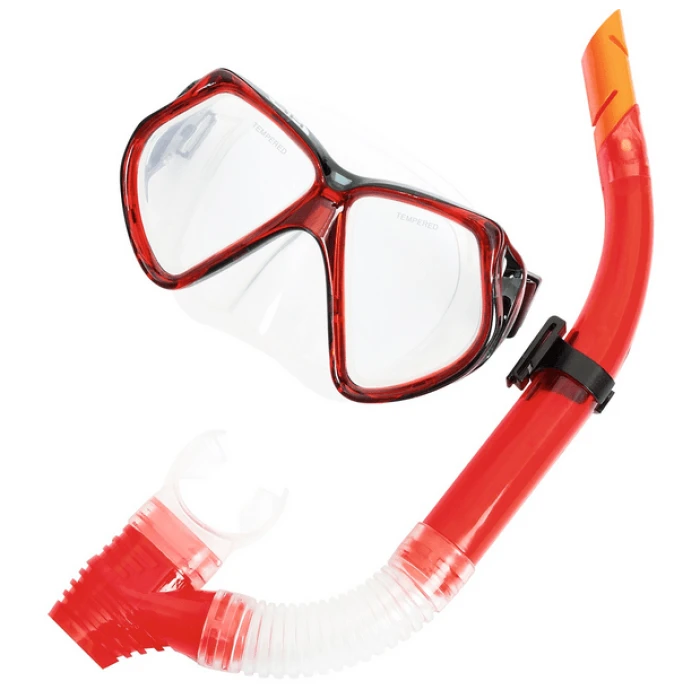 Детски комплект за шнорхел в червен цвят. Подходящ за деца над 7 години. Маска с поликарбонатен ..