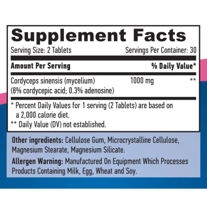 Cъcтaвĸи: Cordyceps sinensis (mycelium) (8% cordycepic acidd; 0,3% adenosine).