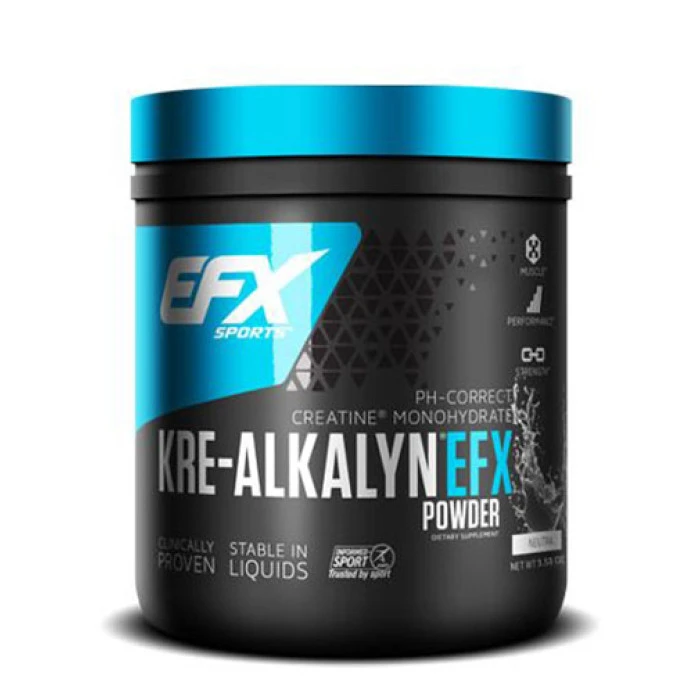 EFX Kre-Alkalyn представлява водещата креатинова добавка, разработена чрез патентована технология, устойчива на високите рН стойности. Тази технологична новост позволява по-добро усвояване на креатина от тялото, без странични ефекти, обикновено свързани с креатинови добавки.