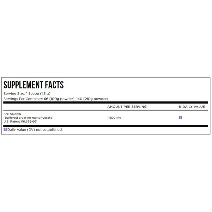 Kre-Alkalyn е с коригирано рН ниво, подходящо за храносмилателната система на човека, което гарантира максимално усвояване на креатина от организма без необходимост от допълнителни "зареждащи фази".