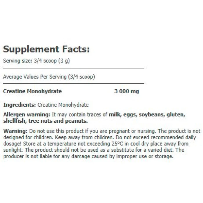 Тя съдържа натурален компонент, произвеждан в организма, който стимулира естественото производство на АТФ - горивото, използвано от мускулите по време на интензивна контракция, доставяйки експлозивна енергия и мощна издръжливост. AMIX Creatine Monohydrate 250g PACK Powder е изключително подходящ за културисти, състезатели по вдигане на тежести, силови атлети и трениращите за издръжливост, всички онези, които се нуждаят от изграждане на чиста мускулна маса, увеличаване на експлозивната сила, максимална устойчивост и подобрение на общите спортни резултати. AMIX Creatine Monohydrate 250g PACK Powder съдържа 100% чист, изключително фин, микронизиран и тестван посредством високоефективна течностна хроматография (HPLC) креатин монохидрат. При прием на креатин монохидрат, за максимално увеличение на мускулите и силата, е от съществено значение да се пият големи количества течности (вода). Това ще осигури достатъчно хидратиране на мускулите и последващ ефект на клетъчно разширение. Креатин монохидратът може да бъде комбиниран с други продукти на компанията Amix, като L-глутамин, аминокиселини или всеки суроватъчен протеин. Една доза: 3/4 мерителна лъжица (3 грама) Начин на употреба: Смесете 1 доза от продукта с 200-300 мл. вода или сок и изпийте веднага. Използвайте продукта приблизително 30-60 минути преди тренировка. Атлети, употребяващи креатин монохидрат,е необходимо да консумират адекватно количество вода за постигане на максимална хидратация и повишаване на метаболитните процеси. Дози в опаковка: 83 Съставки: креатин монохидрат Забележки: Пазете далеч от деца! Съхранявайте на сухо и хладно място! Поръчай сега от Спортен склад БГ AMIX Creatine Monohydrate 250g PACK Powder с експресна доставка!
