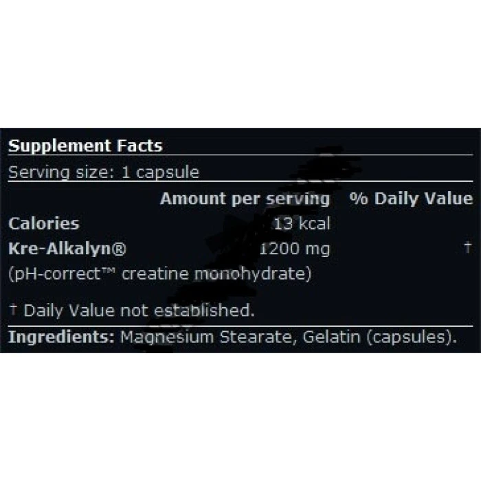 Разфасовки: 120 капсули, ALL AMERICAN EFX Kre-Alkalyn съдържа патентован буфериран креатин монохидра..