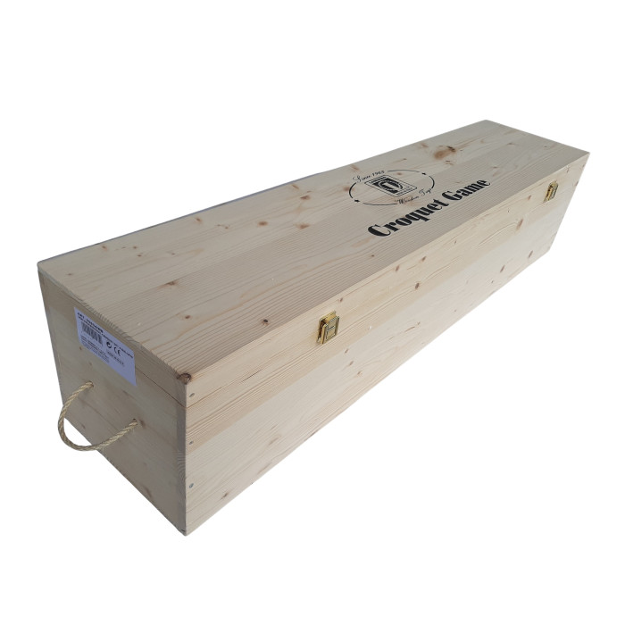 ДЪРВЕНА КУТИЯ И ПРИЯТНО УСЕЩАНЕ ЗА ИГРА Голям плюс на този комплект е дървената кутия, която улеснява съхранението и пренасянето. Така всички части остават събрани и подредени между отделните игри. Дървената изработка също допринася за по-естествено усещане и подхожда на класическия стил на крокета като традиционна игра за открито.