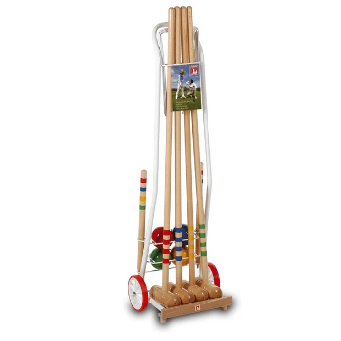 Крокет комплект за 4 играчи с дървени елементи. Популярна градинска игра за 4 играча. 4 бр. дърв..