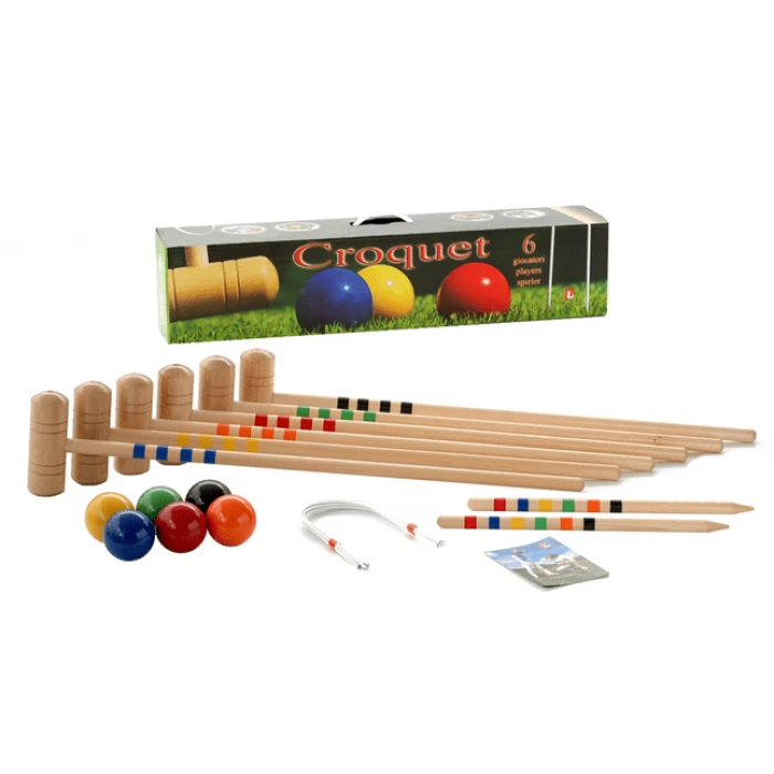 ГОТОВ КОМПЛЕКТ ЗА ИГРА НА ОТКРИТО Крокет за 6 играчи. LUCIO LONDERO е практичен комплект за крокет, който дава всичко необходимо за игра със семейство или приятели, без да се търсят отделни части. Форматът за 6 играчи е много удобен за двор, вила, парк или поляна, когато искаш игра, която да събере повече хора едновременно. Това го прави добър избор за семейни събирания, градински партита и спокойни занимания на открито.