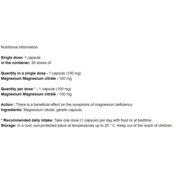 Магнезиев цитрат NOW е хранителна добавка, която поддържа нормални функциите на нервната систе..