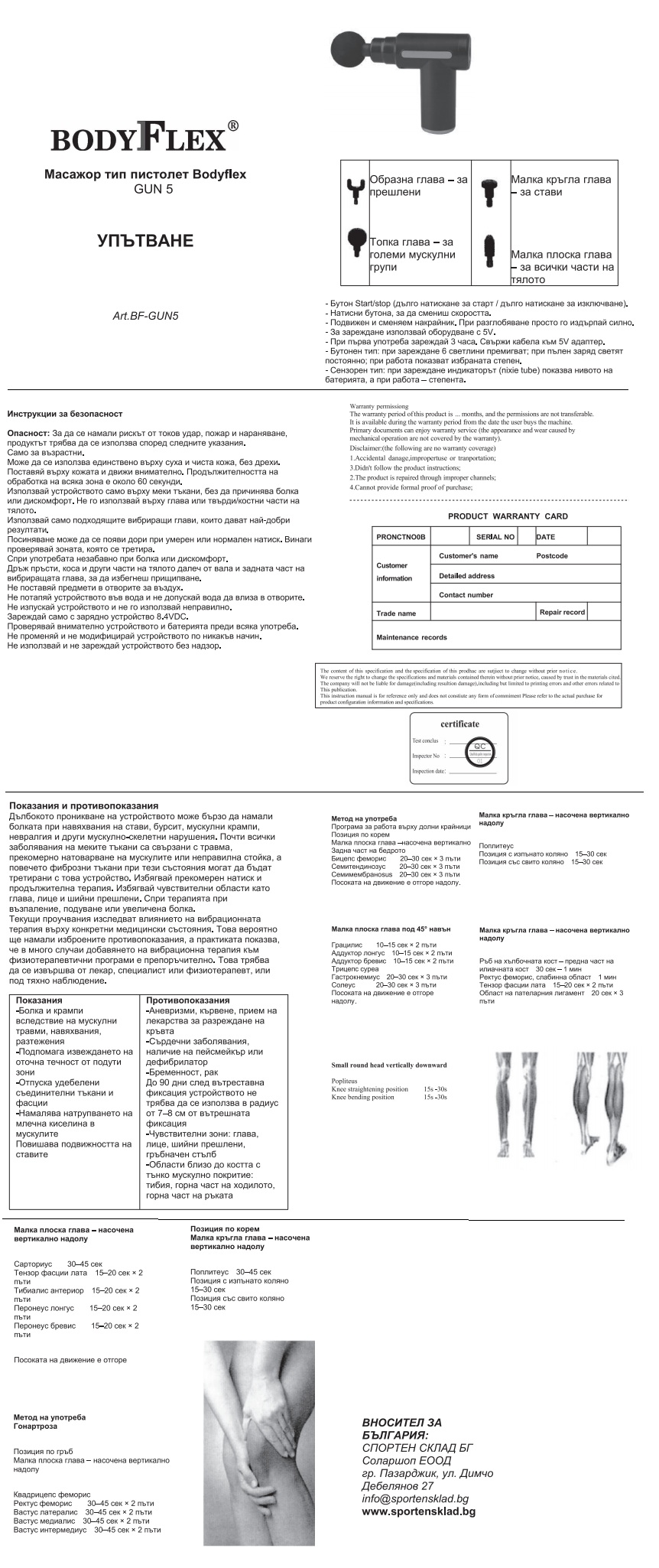 Този масажен пистолет Bodyflex е създаден за ефективно възстановяване и облекчаване на напрежението след тренировка, работа или продължително натоварване. Уредът разполага с мощност 25W и шест скорости, които позволяват лесно регулиране на интензитета в зависимост от зоната и нуждата. Диапазонът от 1800 до 3200 оборота в минута осигурява достатъчна сила за проникване в дълбоките мускулни слоеве и подпомага по-бързото отпускане и възстановяване.