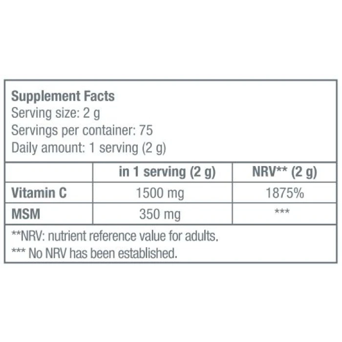 MSM+Vitamin C съдържа витамин C, който подпомага имунитета и цялостното здраве. MSM подпомага усвояването на витамин С и подобно на него притежава антиоксидантни свойства, което прави продуктът още по-ефективен.