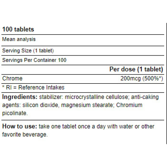 Хромът е важен микроелемент, който е нужен за поддържане на нормалната концентрация на глюкоза в кръвта. Хром пиколинат е с висока усвоимост има много полезни ефекти, когато се включи в хранителния режим - подобрява усвояването на глюкозата, засилва ефекта на инсулина в тялото, потиска апетита за сладки храни и насърчава редуцирането на мазнините.