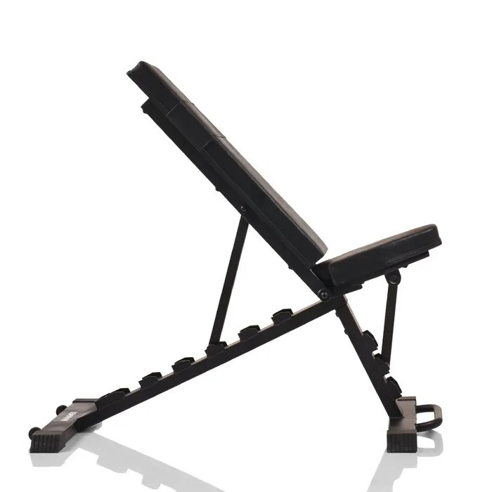 Стоманената конструкция с прахово покритие осигурява впечатляваща устойчивост при по-високи натоварвания, а дебелата тапицерия добавя комфорт дори при по-дълги тренировки. Усещането е стегнато и стабилно, което помага да се концентрираш върху техниката и изпълнението. Благодарение на компактните размери и възможността за сгъване, пейката се прибира лесно – идеално решение, когато разполагаш с ограничено пространство, но не искаш да се отказваш от качествена тренировка.
