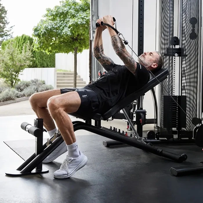 ПОВЕЧЕ УПРАЖНЕНИЯ С ЕДНА ПЕЙКА Регулируемата облегалка позволява да сменяш ъгъла според упражнението и така да разшириш тренировката далеч отвъд обикновеното вдигане от лег. Можеш да работиш за гърди, рамене, гръб, ръце и корем, което прави модела практично решение за домашен фитнес с ограничено пространство. Това е особено полезно за хора, които искат повече упражнения с една лежанка, без да пълнят стаята с няколко различни уреда.