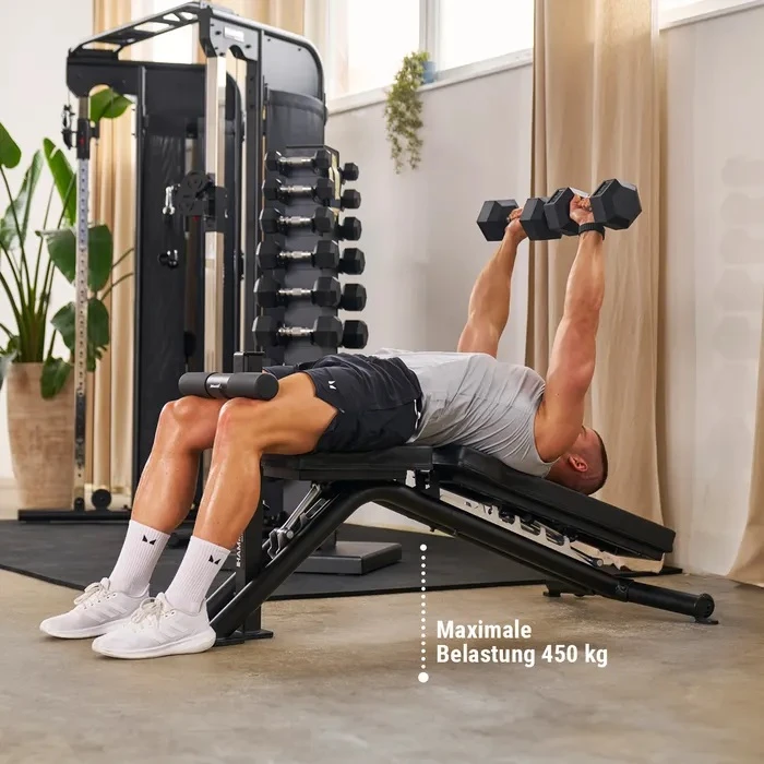 СТАБИЛНА ПЕЙКА ЗА СЕРИОЗНИ ДОМАШНИ ТРЕНИРОВКИ Hammer Maximum Autark е много добър избор за хора, които търсят здрава многофункционална лежанка за по-сериозно натоварване у дома. Голямото ѝ предимство е високата товароносимост до 450 кг общо, което дава повече спокойствие при работа с по-тежки тежести. Това я прави подходяща за трениращи, които не искат лека и компромисна пейка, а стабилна основа за дългосрочна употреба.