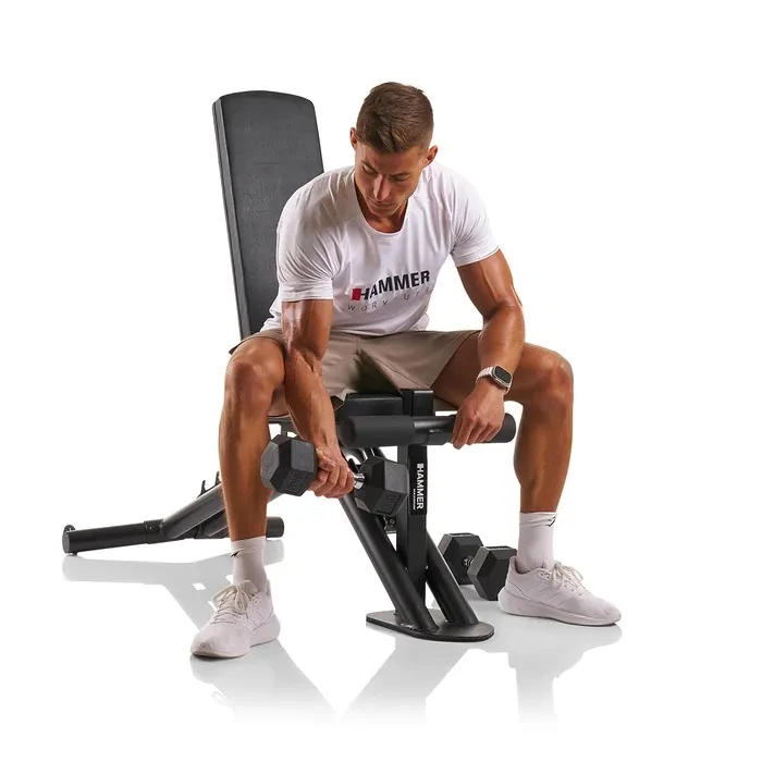 До 250 кг общо натоварване с тежестите. Модел: Hammer Force 6.0. Тип: многофункционална регулиру..