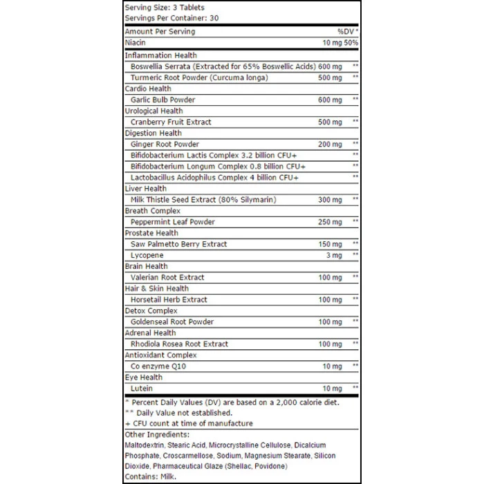 Начин на употреба: 1 доза (3 таблетки) на ден с храната.