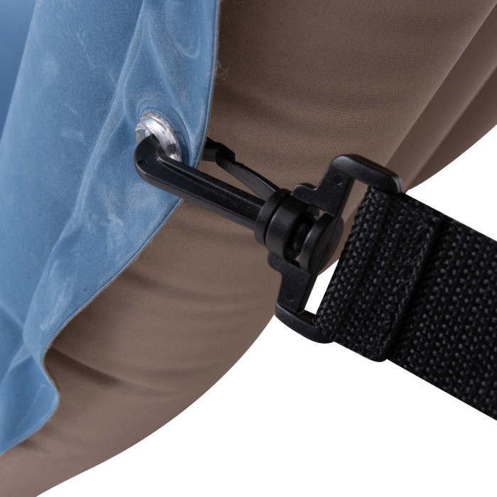 ПО-ДОБЪР КОМФОРТ И ФУНКЦИОНАЛНОСТ Горното меко велурено покритие създава по-приятно усещане при допир и е добър детайл за по-комфортно лежане. Конструкцията с три въздушни камери помага за по-равномерно разпределение и по-стабилна форма при употреба. Допълнителен плюс е, че моделът може да се сгъне като стол с облегалка чрез 2 каишки, което дава повече варианти за ползване, когато не искаш само да лежиш, а и да седнеш по-удобно.