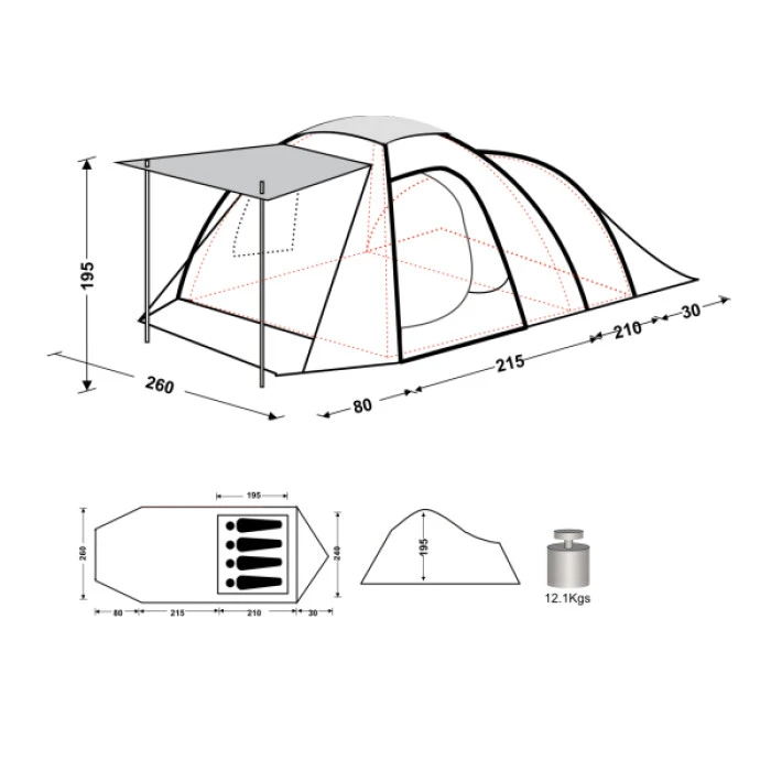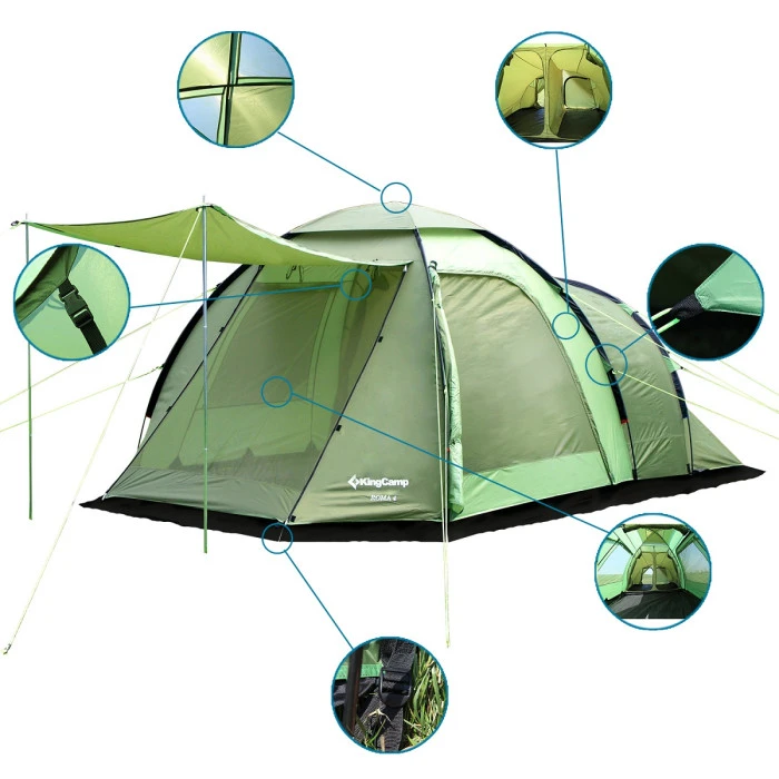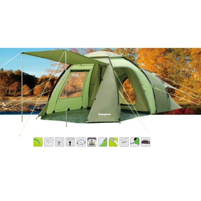 Шестместна палатка KING CAMP Бари 6. Тегло 15,1 кг. Броят на лицата, 6 Две жилищни площи 180 х..