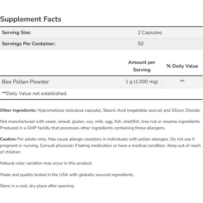 NOW Bee Pollen предоставя всички естествени хранителни вещества, като при истински здравословната храна. Пчелният прашец е фин прах, който представлява мъжкият елемент на цветето. Медоносните пчели, събиращи прашеца, инстинктивно вземат само чистия и здравословен прашец. След това той е смесен с цветен нектар и слюнката на пчелите, за да образува една напълно естествена, високо питателна храна, която съдържа всички двадесет и два елемента, изграждащи човешкото тяло. Доставя витамини, аминокиселини, макроелементи и ензими в една балансирана и синергична комбинация, която предоставя оптималното от биоразнообразието.