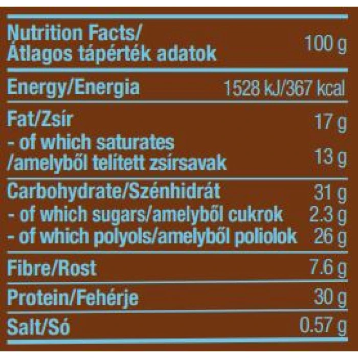 BIOTECH USA Protein Bar e вкусен протеинов бар, с минимално количество захар, който ще те засити, винаги когато имаш нужда от нещо сладко и полезно. Удобна опаковка и перфектен размер, са малка част от плюсовете му. BIOTECH USA Protein Bar e перфектният избор за всички, които имат забързано ежедневие и нямат възможност да си набавят необходимото количество протеин и калории за деня. Може да го хапвате след тренировка или през деня, когато почуствате нужда. BIOTECH USA Protein Bar e в няколко невероятни вкуса и високо съдържание на протеин, освен това е и изключително богат на фибри. Една Доза: 1 бар Начин на приемане: Според собствените нужди Дози в опаковка: 1 Вземи още сега с гарантирано качество от Спортен склад БГ! Съставки: овлажнители (малтитоли, глицерол), покритие [подсладител (малтитоли), напълно хидрогенирани растителни мазнини (кокосов орех, рапица), намалено с мазнини какао на прах, емулгатор (лецитини)], концентрат на суроватъчен протеин, концентрат на млечен протеин, фруктоолигосахариди, хидролизиран колаген, напълно рафиниран кокосово масло, какао на прах с намалено съдържание на мазнини, суроватъчен протеинов изолат [суроватъчен протеин изолат, емулгатор: лецитини (соя)], вода, бадемово брашно, емулгатор: лецитини (соя), стягащ агент (карагенан), ароматизатори, консервант (калиев сорбат) , стабилизатор (калиев хлорид), антиоксидант (алфа-токоферол), подсладител (сукралоза). Забележки: Пазете далеч от деца. Съхранявайте на сухо и хладно място. Да не се използва като заместител на разнообразното хранене. Прекомерната употреба може да има разхлабителен ефект. Поръчай сега от Спортен склад БГ BIOTECH USA Protein Bar / 35 g с експресна доставка!