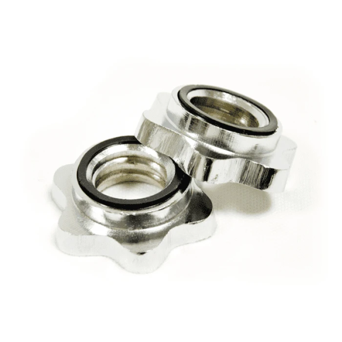 Тези гайки са удобни за подмяна на износени или повредени части, като удължават живота на тренировъчното оборудване. Лесни са за поставяне и сваляне, а компактният размер и ниското тегло ги правят удобни за съхранение и носене. Подходящи са както за домашна употреба, така и за зали, където е нужно честа смяна на дискове.